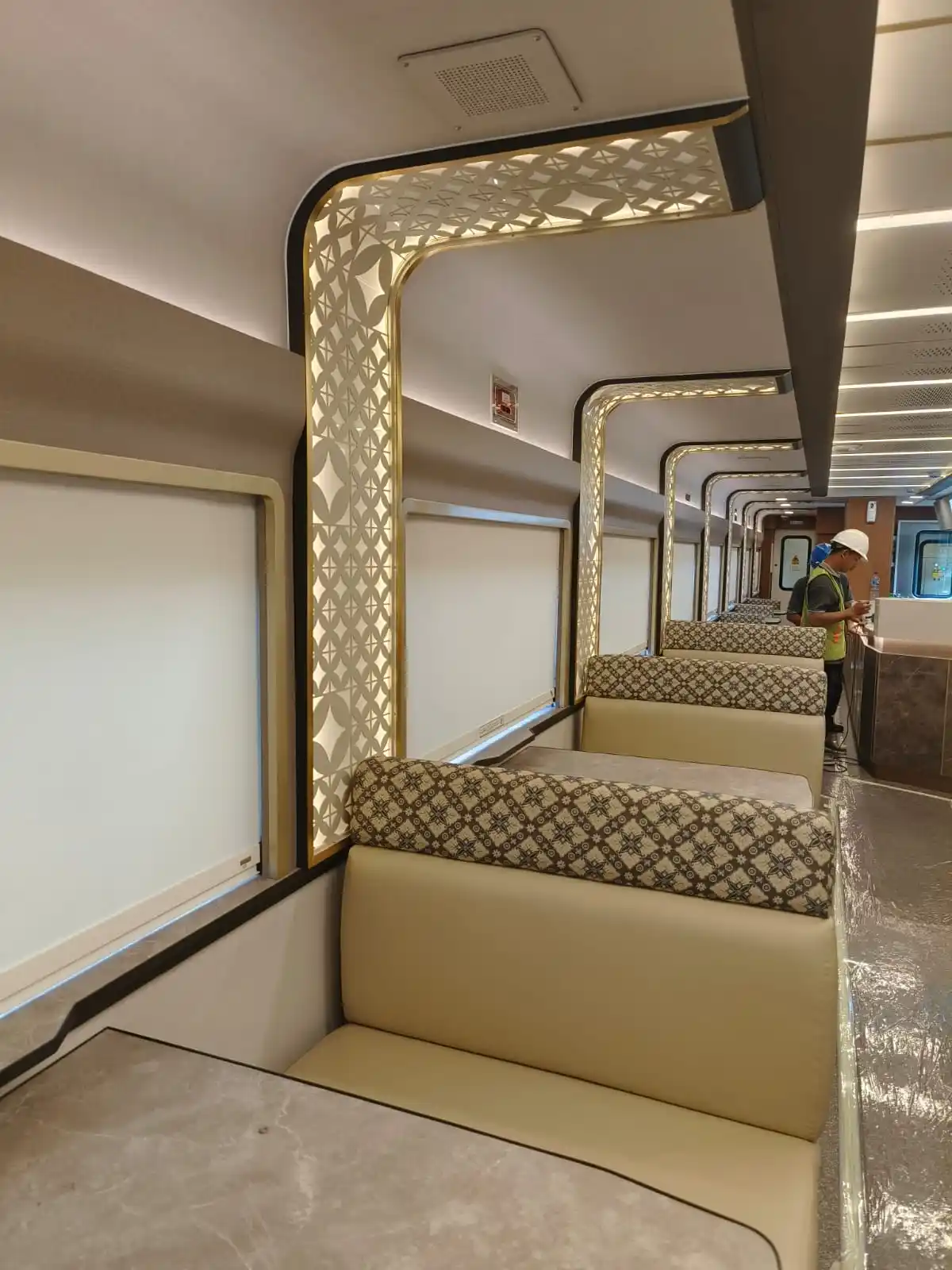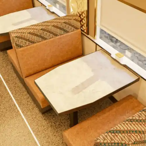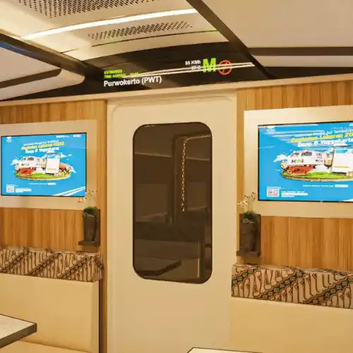 Tahap kedua proyek Interior Kereta Makan New Generation menitikberatkan pada penyempurnaan desain serta peningkatan kualitas tampilan ruang makan di dalam kereta. DSK menghadirkan elemen interior yang lebih modern melalui pengembangan detail desain, pencahayaan terintegrasi, serta material finishing yang lebih premium. Penataan area duduk dan jalur pelayanan juga dioptimalkan untuk menciptakan suasana yang lebih nyaman, estetis, dan mendukung kelancaran operasional layanan makanan selama perjalanan.
